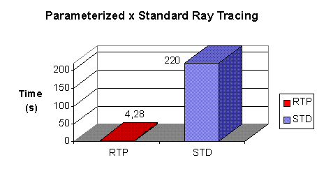 Parameterized Ray Tracing generates a new image (optical parameters changed) about 50 times faster than conventional Ray Tracing.