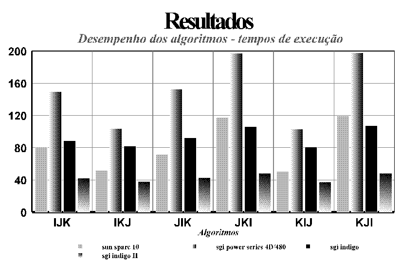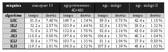Verificamos por esta tabela que o algoritmo com o pior desempenho, em todas as máquinas foi a